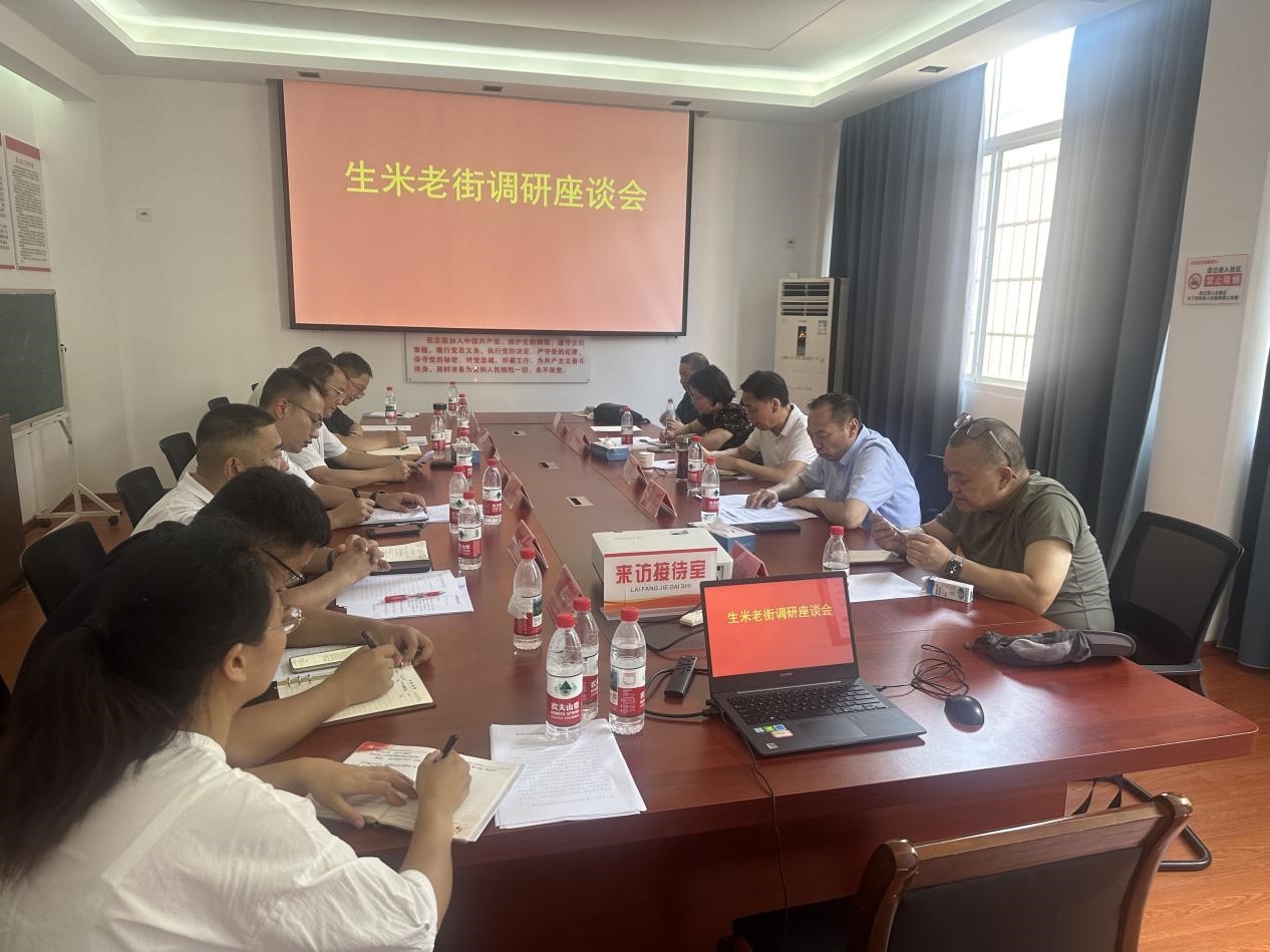 7月10日,省住房城乡建设厅副厅长王晓明一行实地调研硬硬av 生米老街保护利用工作并召开座谈会。市政府副秘书长杨墉富陪同调研并参加座谈。