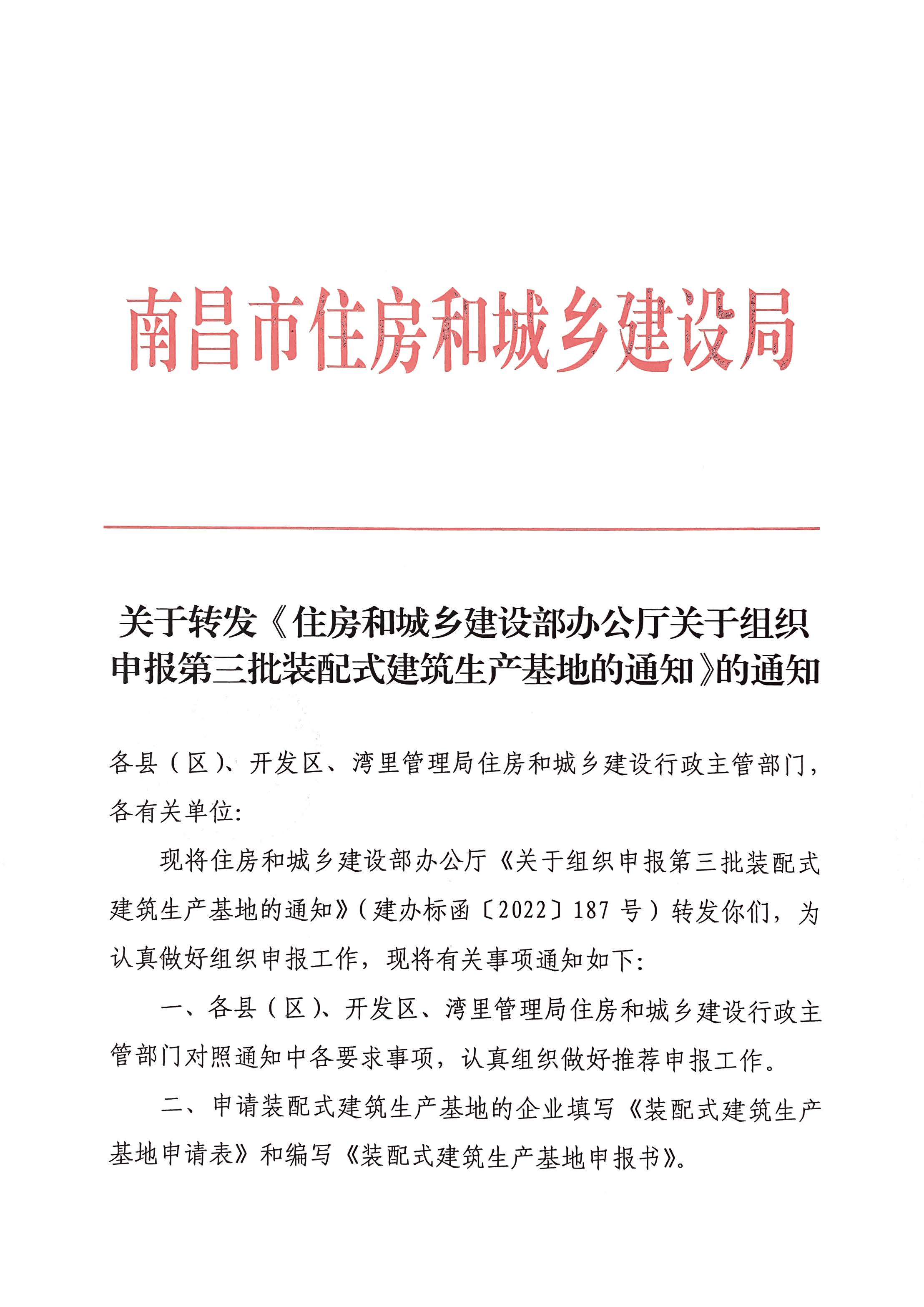 关于转发《住房和城乡建设部办公厅关于组织申报第三批装配式建筑生产基地的通知》的通知