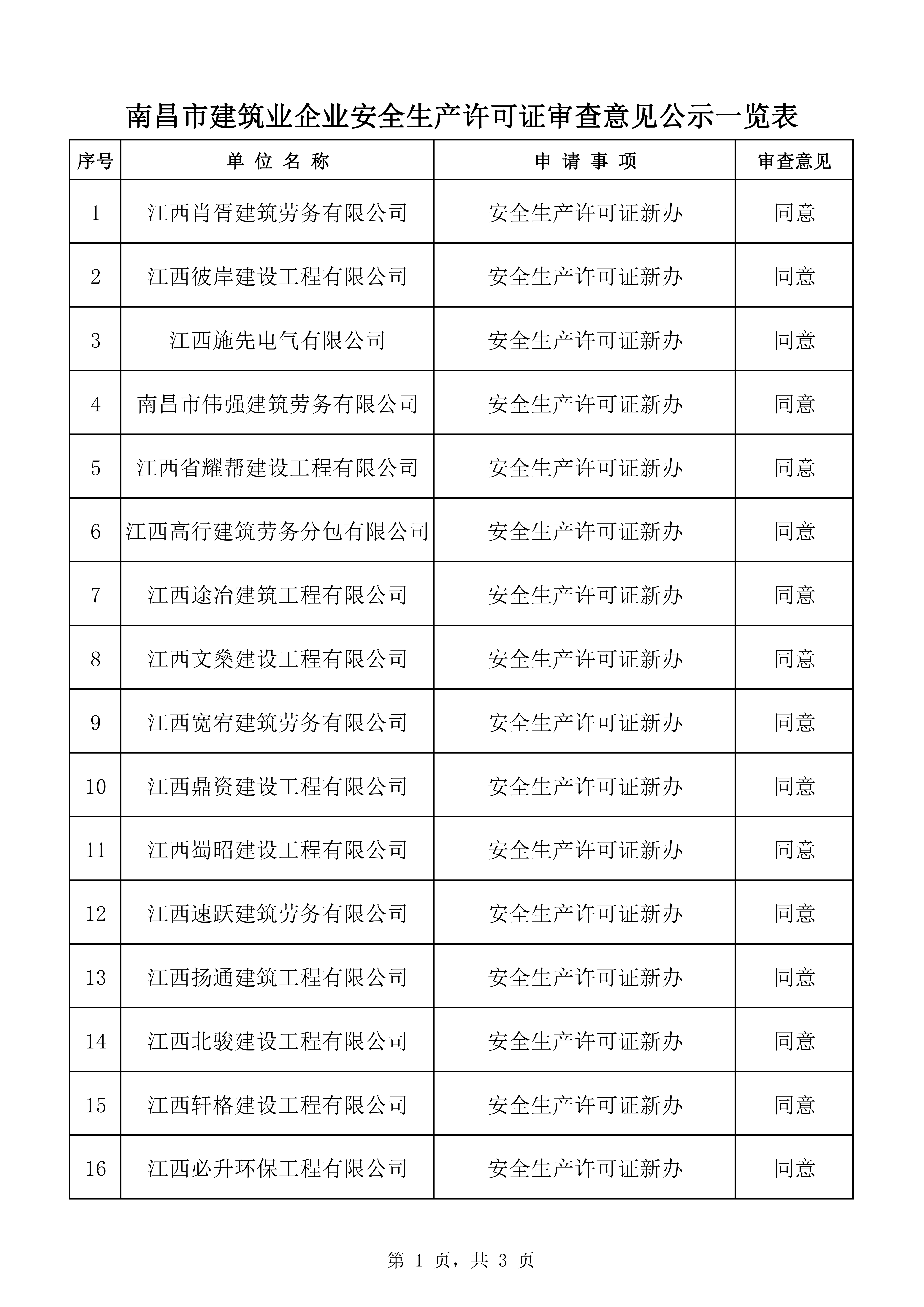 附件:南昌市建筑业企业安全生产许可证审查意见公示一览表