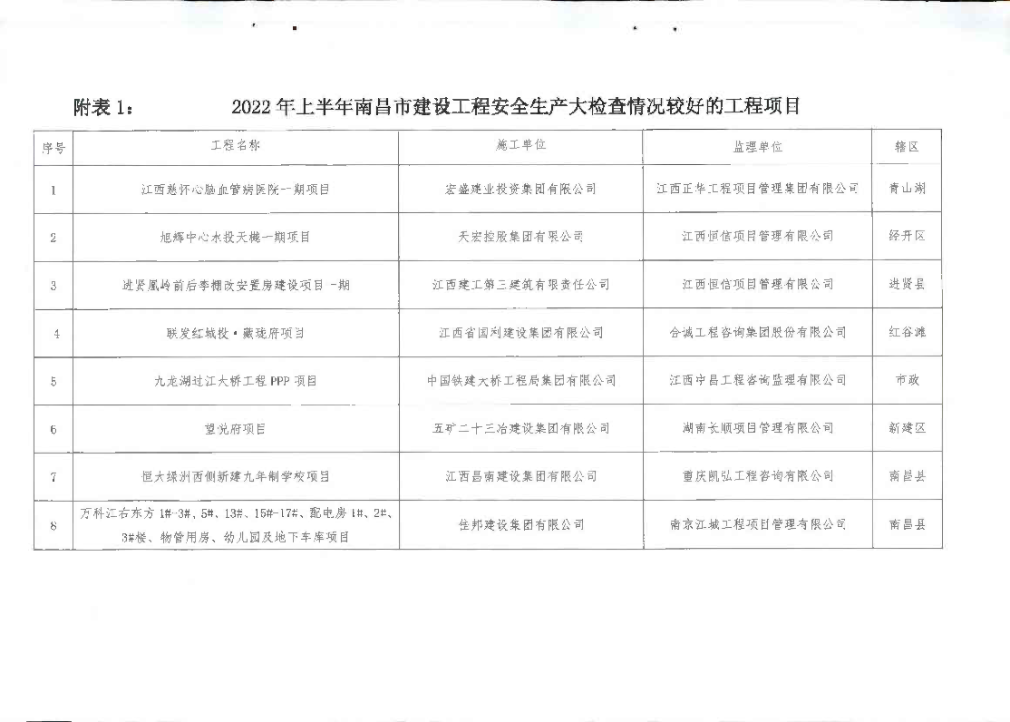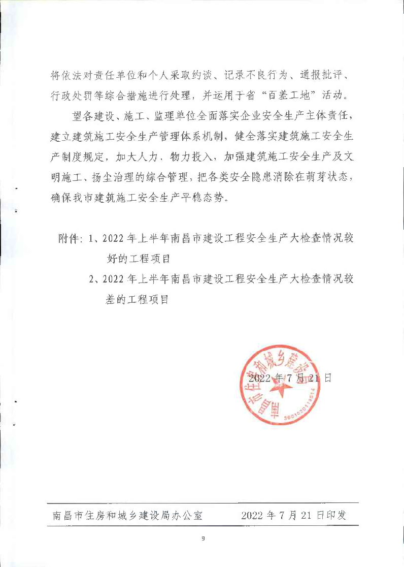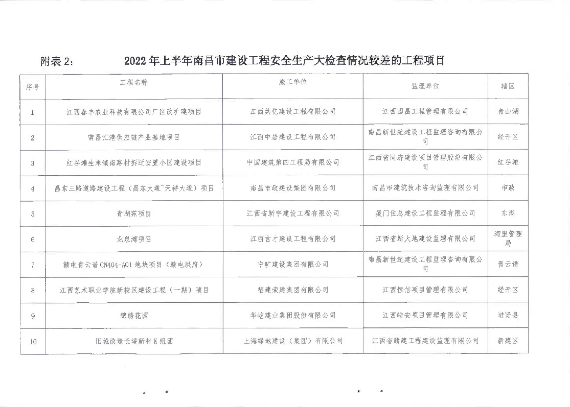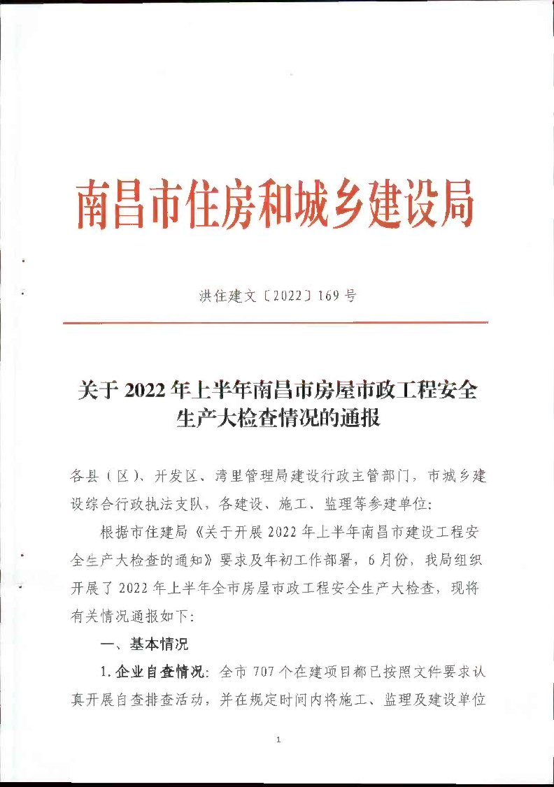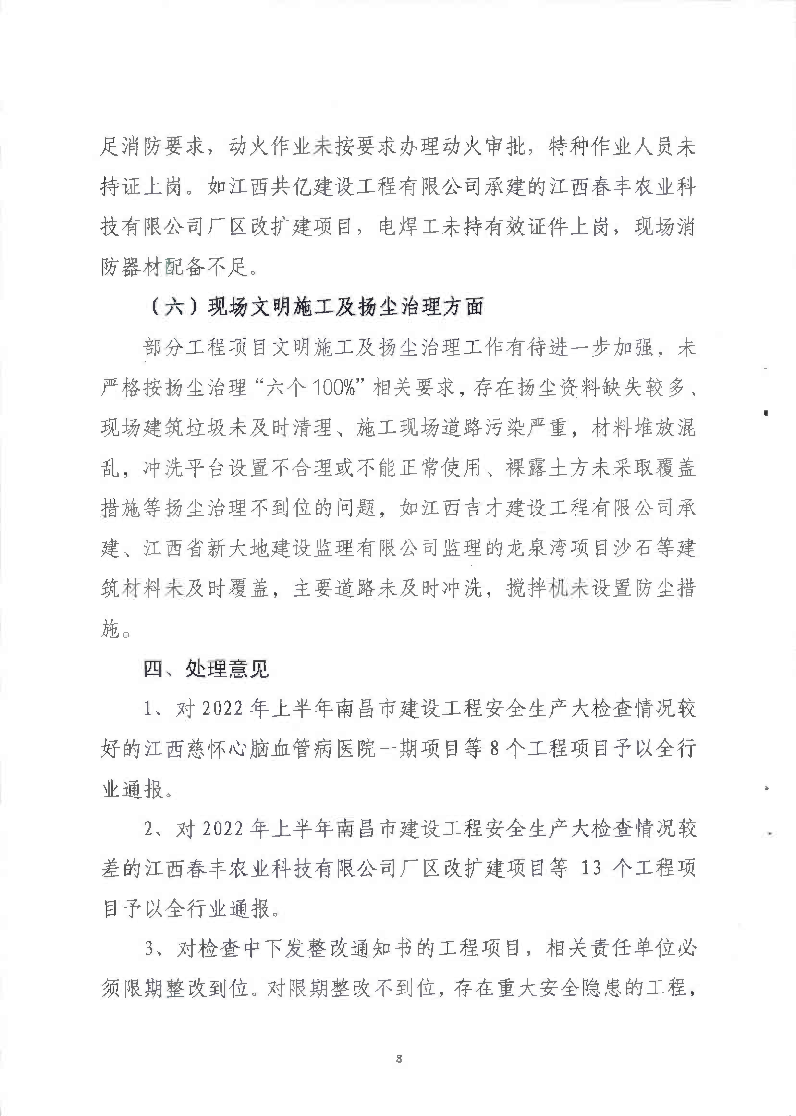 关于2022年上半年南昌市房屋市政工程安全生产大检查情况的通报