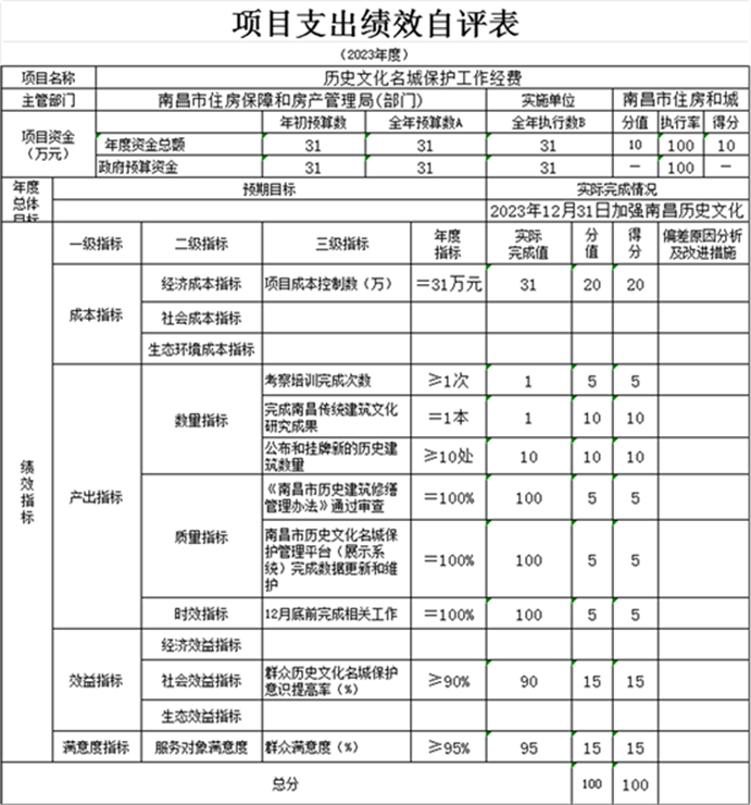 2、本单位“历史文化名城保护工作经费项目支出绩效自评表”如下: