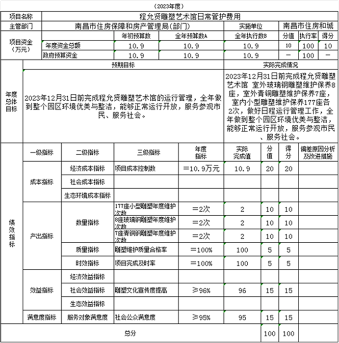 1、本单位“程允贤雕塑艺术馆日常管护费用项目支出绩效自评表”如下: