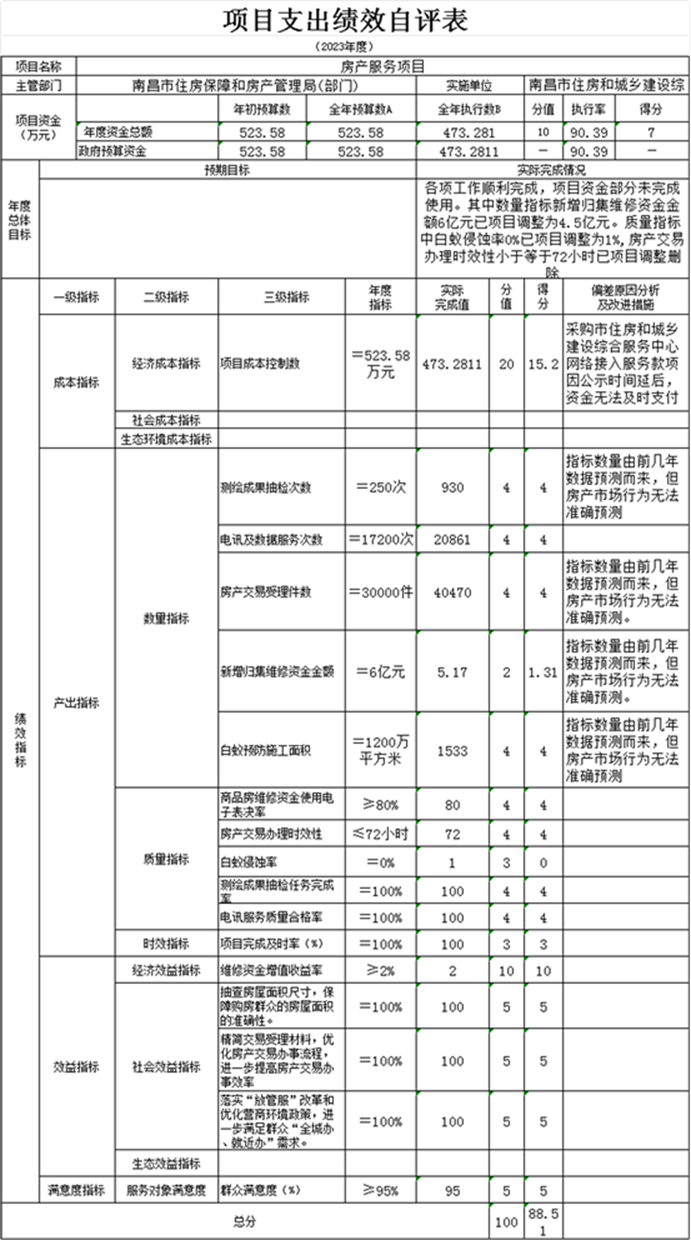 3、本单位“房产服务项目支出绩效自评表”如下: