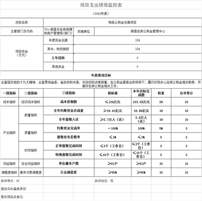 本单位“铁路公积金发展项目支出绩效自评表”如下: